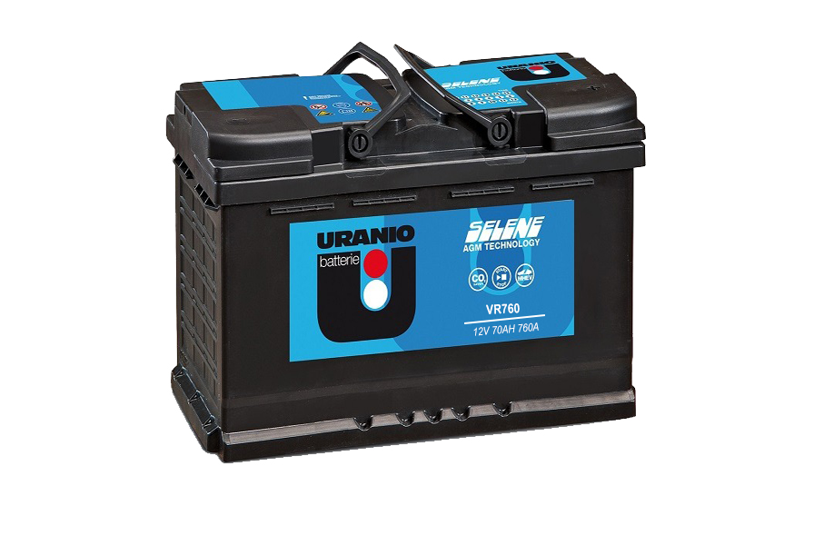 Batterie auto URANIO VR760 12V 70Ah 760A, technologie AGM Start & Stop, format L3. Compatible selon dimensions, polarité et préconisations constructeur.